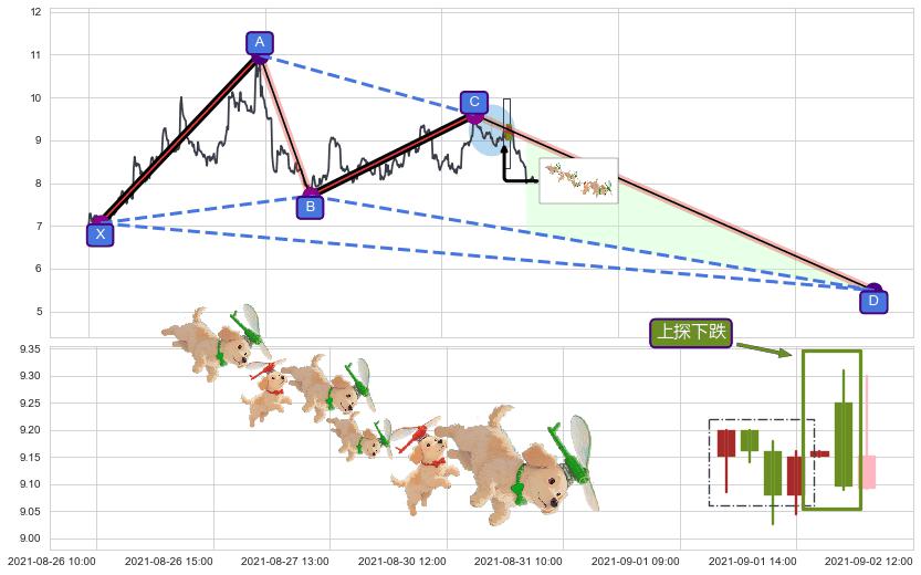 | 8 🅚:阴包阳(穿头破脚) ➕ 📡:谐波蝴蝶猜想c点拉升接近b点后强阻力来临下沉下跌(均值回复) ☞ 看空信号 ⇥ 【🅚线】交织【图形】⇥ 综合量化分数: 42 | > |