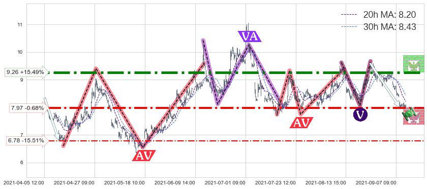 ♞ 20小时均线:8.20,30小时均线:8.43→ 快线<慢线