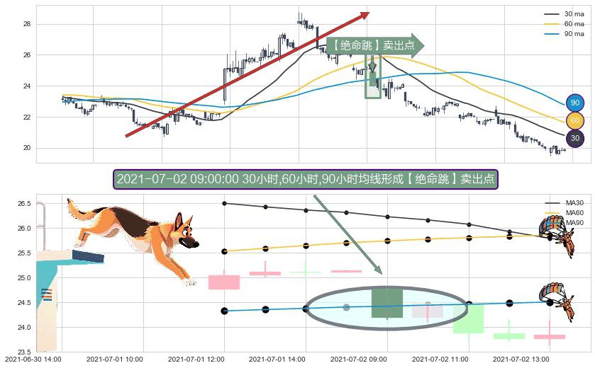 ⚀ 2021-07-02 09:00:00小时显现 30小时-60小时-90小时均线 【绝命跳】卖出点 看空信号,后市看跌,卖出