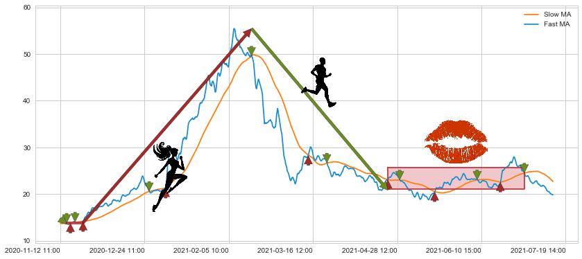 04-23 10:00至07-02 11:00 慢线与快线多次接触,存在上下穿越,有缠绕