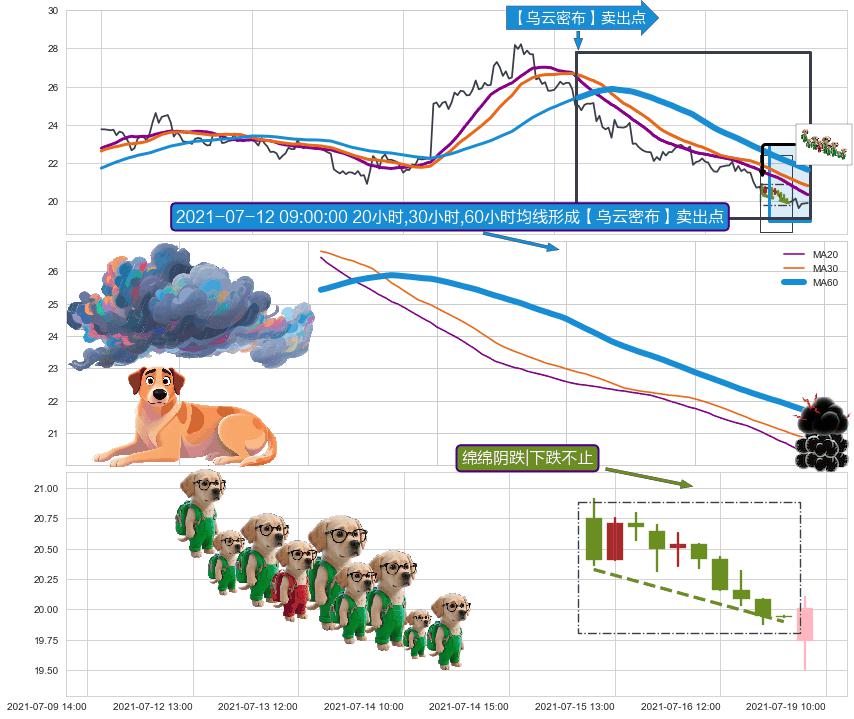 | 4 🅚:三只乌鸦 ➕ 🎢:【乌云密布】卖出点均线组合卖出点信号形成后,猜想后续下行持续,下跌加速(趋势跟踪) ☞ 看空信号 ⇥ 【均线】交织【🅚线】⇥ 综合量化分数: 42 | > |
