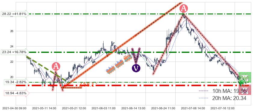 ♘ 阻力价格位19.34,可信任强度44.29%,距离最后交易2021-07-19 14:00形成的收盘价格19.90相差 -2.82%