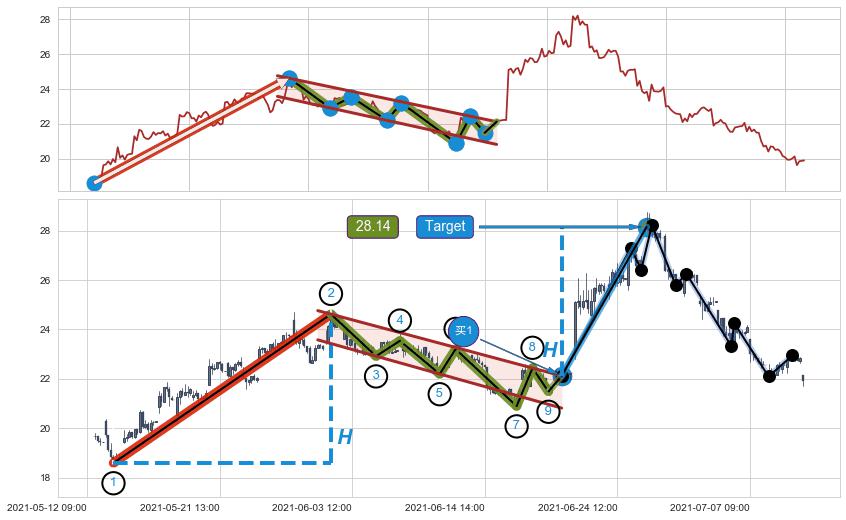 ➣ 最小中继整理涨幅→𝐇: 6.02 (𝐇旗杆的长度:旗杆起点→顶点)