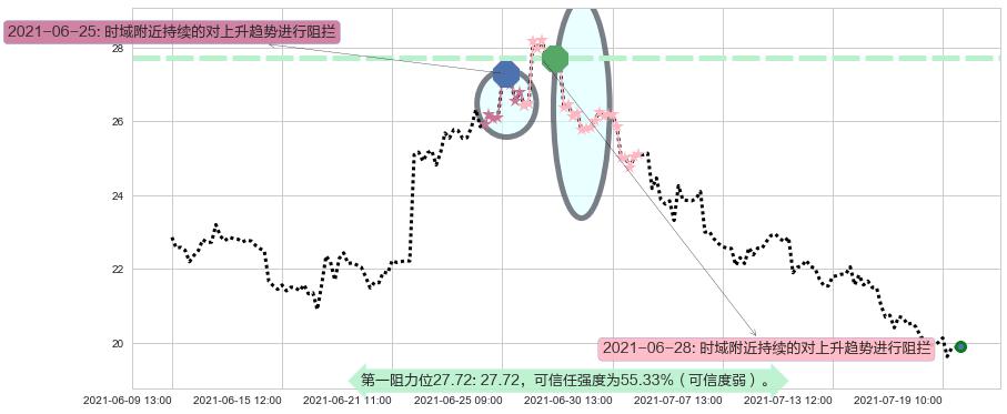 2021-06-25: 时域附近第一阻力位27.72持续的对上升趋势进行阻拦,有效放缓了上涨的速度。