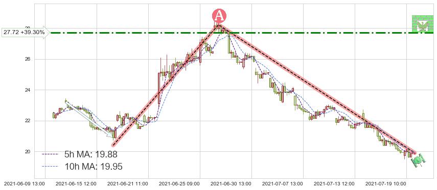 ♘ 阻力价格位27.72,可信任强度55.33%,距离最后交易2021-07-19 14:00形成的收盘价格19.90相差 +39.30%