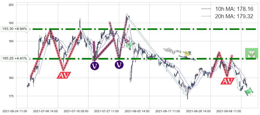 ➢ 【仅预测突破】最后价格:177.43与预测突破价格:185.40→【空间较大】后续最小【反转】第一目标价格→(09-17:12: 197.67 )