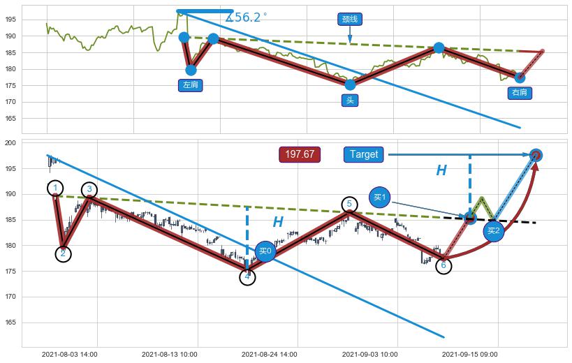 ➣ 最小反转涨幅→𝐇: 12.27 (头部与颈线垂直距离)
