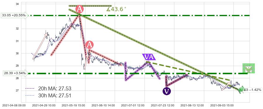 ♘ 阻力价格位33.05,可信任强度72.50%,距离最后交易2021-09-09 14:00形成的收盘价格27.42相差 +20.55%
