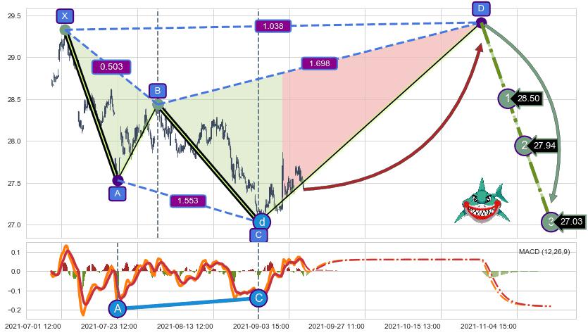 ➣ D点拟合预测价格29.41,距离最后交易收盘价格27.42相差 +7.27%