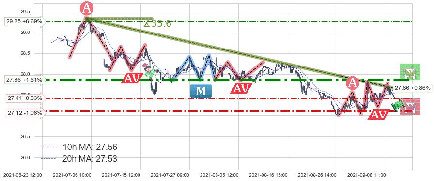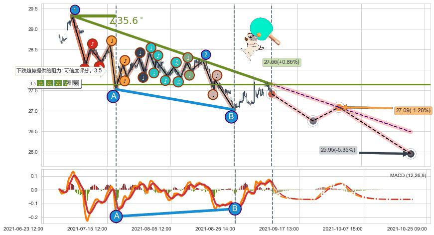 ➣ 预测:2021-09-30 15:00,【试探阻力】稳定目前下跌趋势的前提下,预测价格:27.09