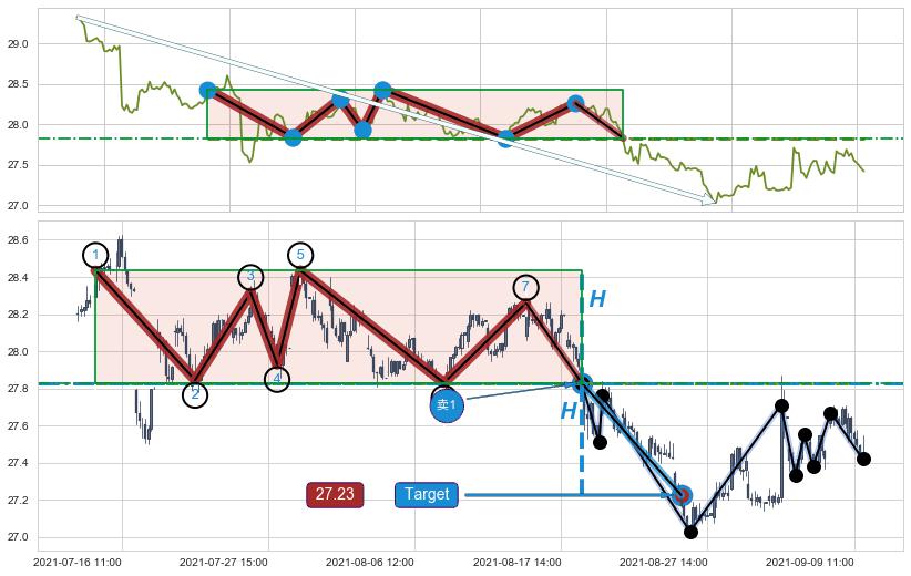 ➢ 【多方力量耗尽】已在08-18:14突破矩形提供的【支撑】颈线 27.83 →箱形震荡盘整结束