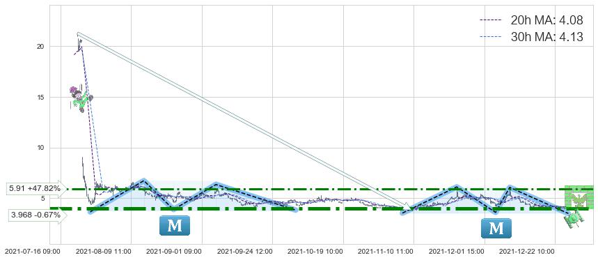 ♞ 20小时均线:4.08,30小时均线:4.13→ 快线<慢线