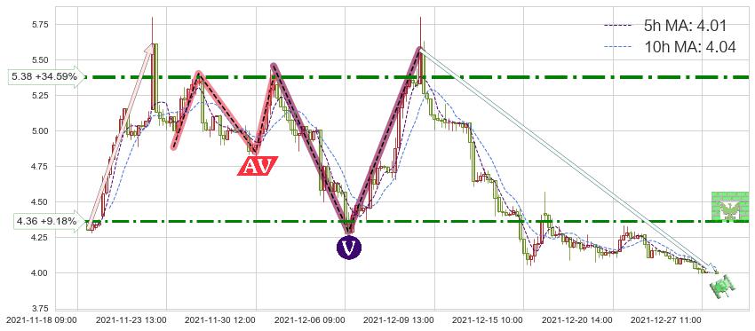 ♞ 5小时均线:4.01,10小时均线:4.04→ 快线<慢线