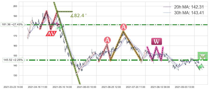 ♘ 阻力价格位145.52,可信任强度84.25%,距离最后交易2021-09-09 14:00形成的收盘价格142.32相差 +2.25%