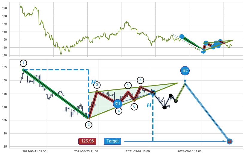 ➣ AI预测: 假定反转启动后, 第❸目标位置(09-27:10, 147.51)