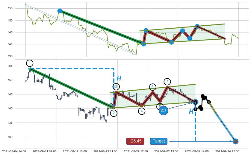 ➣ AI预测: 假定反转启动后, 第❶目标位置(09-21:09, 141.33)