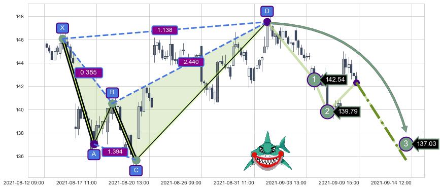 ➣ 已完成【鲨鱼】形态起点X: 08-13:10, 终点D: 09-01:10, 共79交易小时