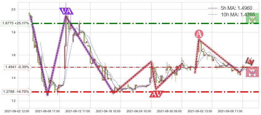 ♘ 阻力价格位1.8775,可信任强度73.73%,距离最后交易2021-09-09 15:00形成的收盘价格1.5000相差 +25.17%