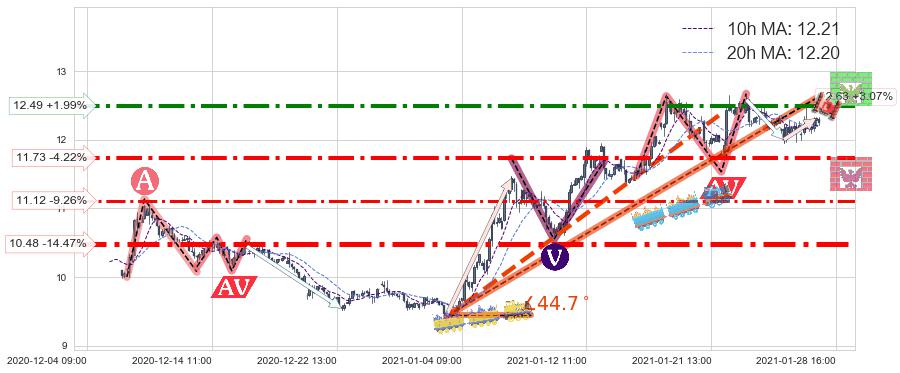 ♘ 阻力价格位12.49,可信任强度72.73%,距离最后交易2021-01-28 16:00形成的收盘价格12.25相差 +1.99%