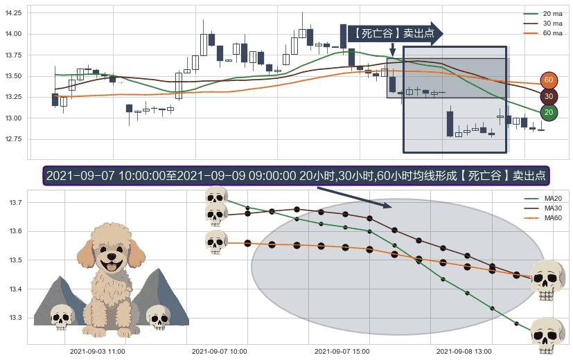 ⚀ 2021-09-07 11:00:00-小时至2021-09-09 09:00:00-小时显现 20小时-30小时-60小时均线 【死亡谷】卖出点 看空信号,后市看跌,卖出
