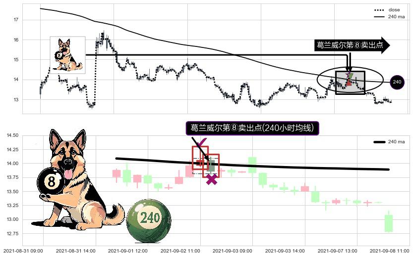 ⚀ 2021-09-02 12:00:00-小时显现 葛兰威尔均线 240小时均线 第⑧卖出点 下降趋势的中继信号,后市看跌,卖出信号