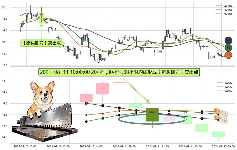 ⚀ 2021-08-11 10:00:00小时显现 20小时-30小时-60小时均线 【断头铡刀】卖出点 看空信号,后市看跌,卖出