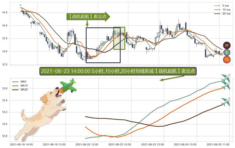 ⚀ 2021-08-20 10:00:00小时-2021-08-25 10:00:00小时显现 5小时-10小时-20小时均线 【战机起航】卖出点 看空信号,后市看跌,卖出
