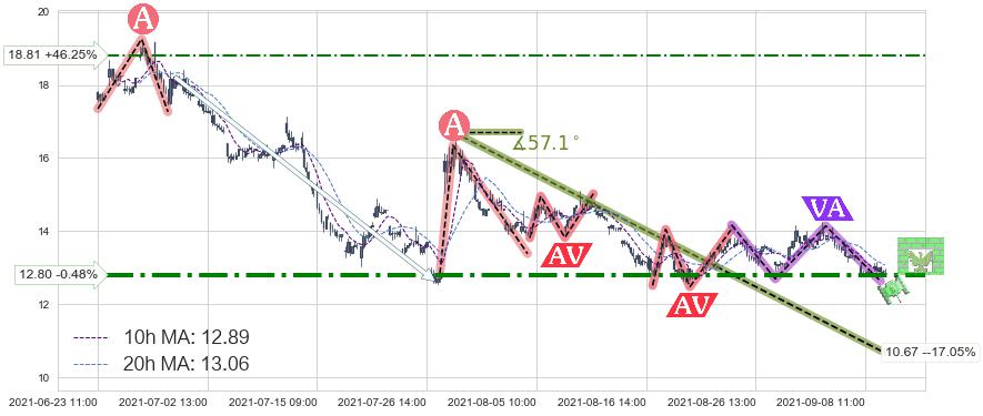 ♞ 10小时均线:12.89,20小时均线:13.06→ 快线<慢线
