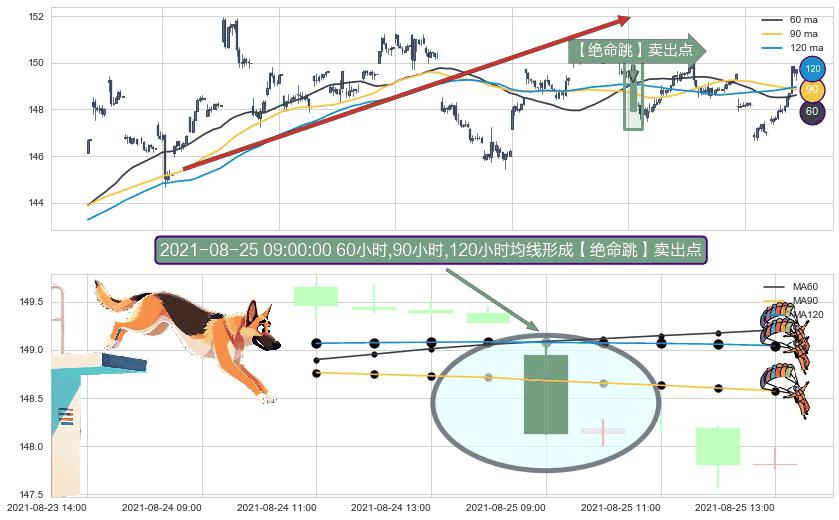 ⚀ 2021-08-25 09:00:00小时显现 60小时-90小时-120小时均线 【绝命跳】卖出点 看空信号,后市看跌,卖出