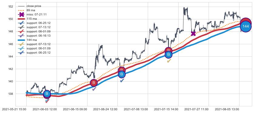 ⚅ 短期均线MA8上穿中期均线MA21形成的交叉是标准 黄金交叉