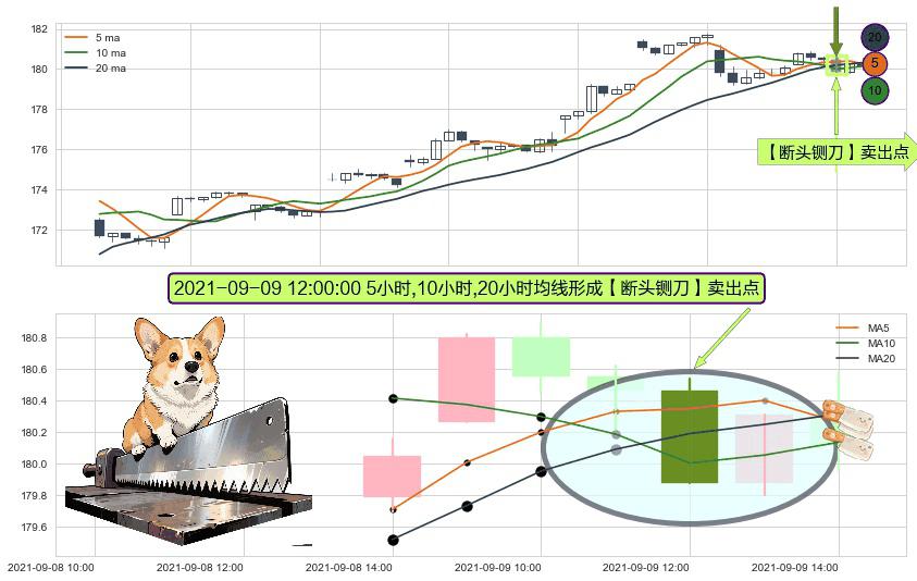形态多维评估: ⚀ 2021-09-09 12:00:00小时显现 5小时-10小时-20小时均线 【断头铡刀】卖出点 看空信号,后市看跌,卖出