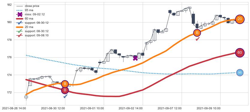 上涨趋势08-26 14:00-09-09 14:00,均线60, 20确认关键支撑2处