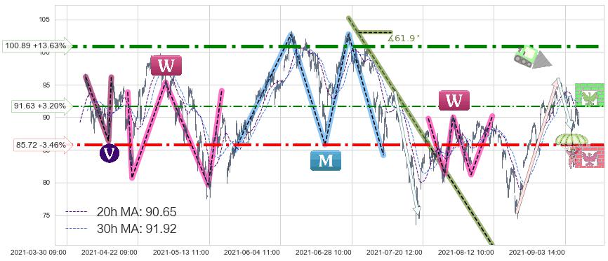 ♘ 阻力价格位91.63,可信任强度53.24%,距离最后交易2021-09-09 14:00形成的收盘价格88.79相差 +3.20%