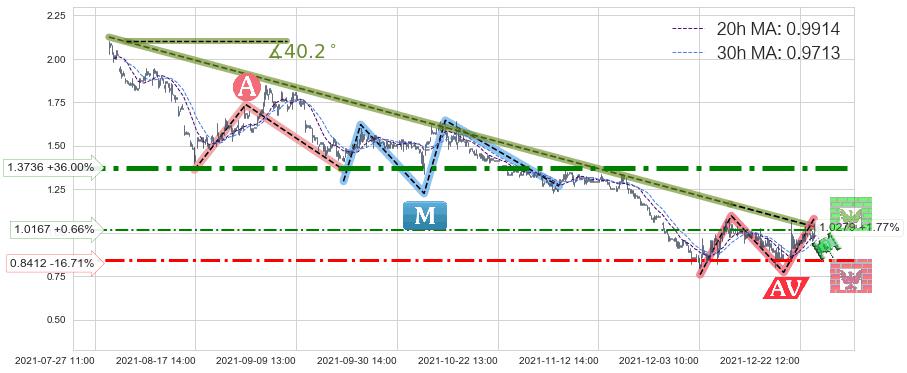➢ 预测:2021-12-28 13:00,【小幅反弹】稳定目前下跌趋势的前提下,预测价格:1.0201