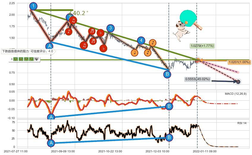 ➣ 预测:2022-01-26 15:00,【继续下探】稳定目前下跌趋势的前提下,预测价格:0.5553