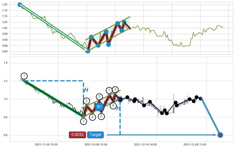 ➢ 最小中继整理跌幅→𝐇: 0.174000 (𝐇楔型旗杆的长度:楔型起点→顶点)