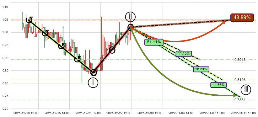 ➢ 循环浪继续向上【最低】位置(01-05:16, 1.0389),匹配聚类样本比例30.56%, 可能性概率11.92%