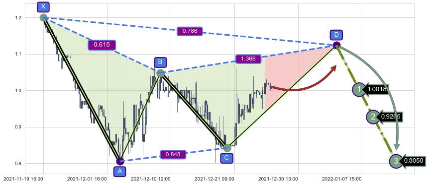 ➣ D点拟合预测价格1.1234,距离最后交易收盘价格1.0100相差 +11.23%