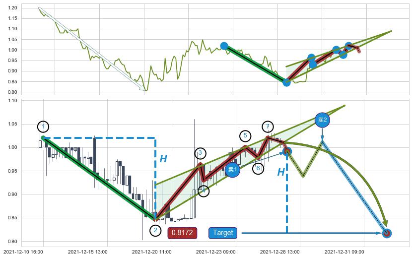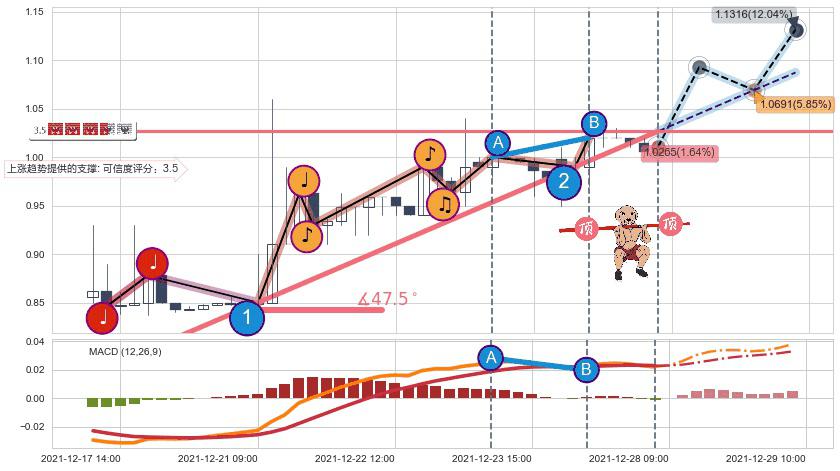 ➣ 预测:2021-12-28 15:00,【试探支撑】稳定目前上涨趋势的前提下,预测价格:1.0691