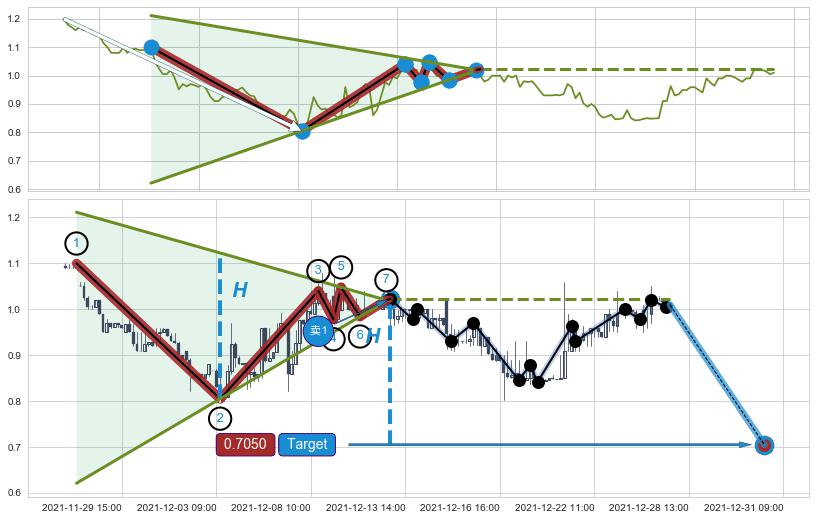 ➣ 【卖2】: 保守型 卖点→(12-14:14: 0.9770 )形成三重顶突破后的【回抽确认】
