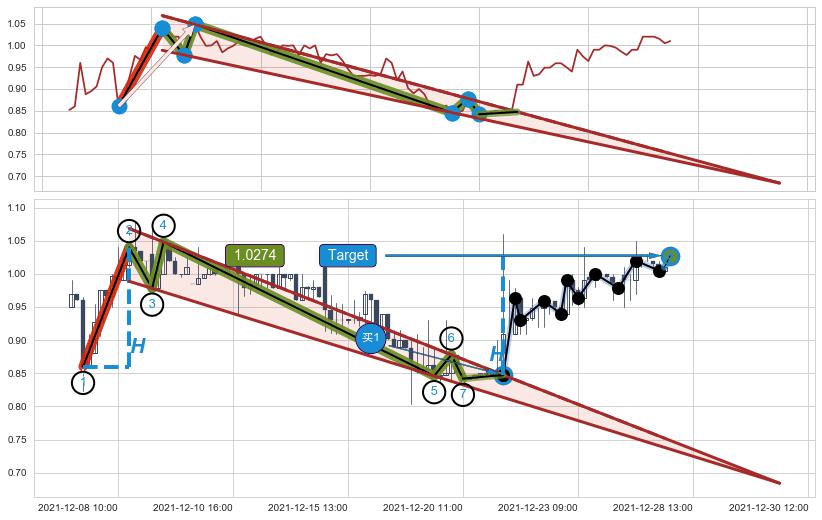 ➢ 【买1】: 激进型 买点 →(12-21:10: 0.8474 )形成突破降🚩楔型【整理】形态