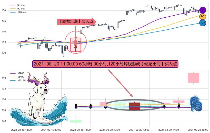形态多维评估: ⚀ 2021-08-20 11:00:00小时显现 60小时-90小时-120小时均线 【蛟龙出海】买入点 看多信号,后市看涨,买入