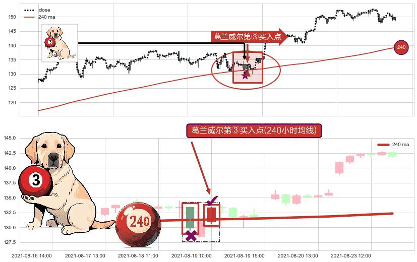 ⚁ 240小时均线 第③买入点 属于 均线服从 信号,属于趋势运行的【常态】即信号期望为上涨趋势的中继