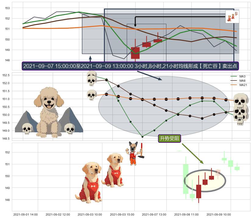 ♞ 5小时均线:149.85,10小时均线:150.00→ 快线<慢线