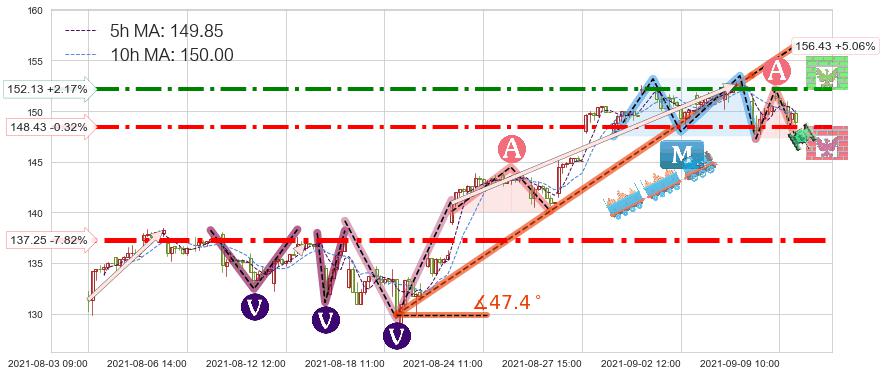 ♘ 阻力价格位152.13,可信任强度80.47%,距离最后交易2021-09-09 14:00形成的收盘价格148.90相差 +2.17%