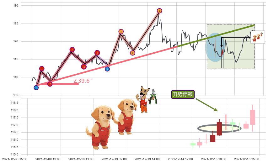 从2021-12-14 12:00至2021-12-27 15:00,共包含60个小时,阶段股价上涨6.04%,阶段股价变动位移路程比: 1 : 4