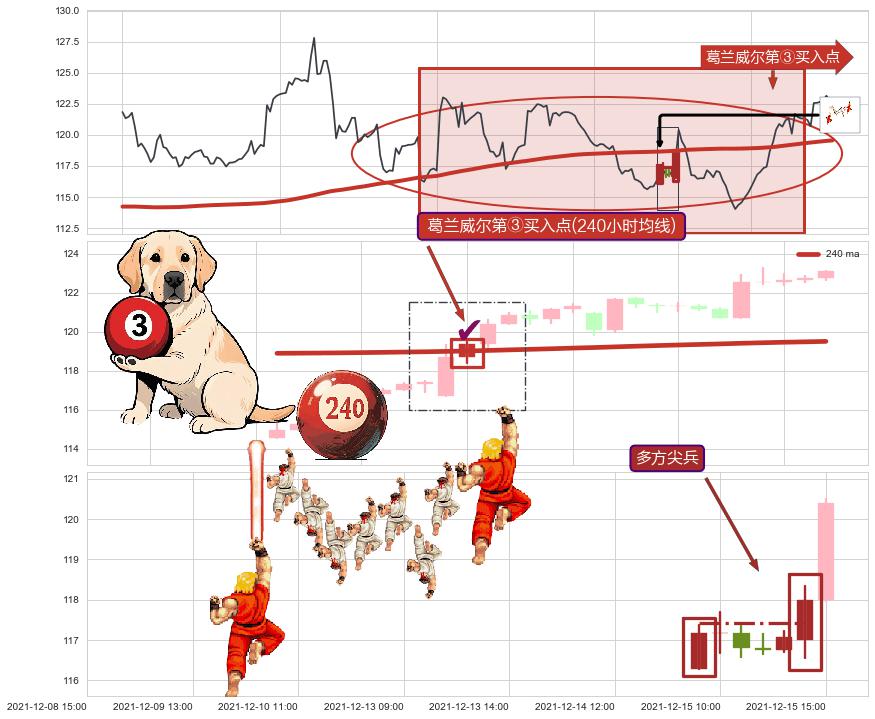 ➢ 收盘价(12-08:14: 121.83 )→再次回踩→第一根k线低点(12-07:15: 121.81 )