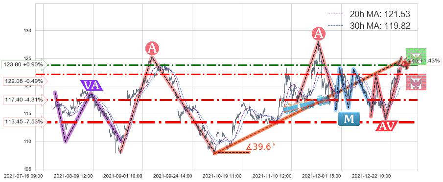 ♘ 阻力价格位123.80,可信任强度63.29%,距离最后交易2021-12-27 15:00形成的收盘价格122.69相差 +0.90%