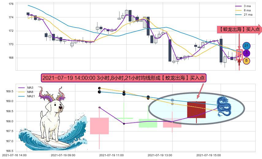 ⚀ 2021-07-19 14:00:00小时显现 3小时-8小时-21小时均线 【蛟龙出海】买入点 看多信号,后市看涨,买入