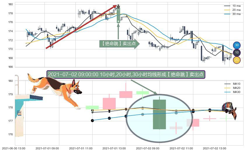 ⚀ 2021-07-02 09:00:00小时显现 10小时-20小时-30小时均线 【绝命跳】卖出点 看空信号,后市看跌,卖出